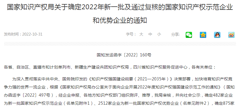 近日,国家知识产权局发布了新一批国家知识产权示范企业和优势企业名单,江南网页版成功被评为新一批国家知识产权示范企业,这是自天堰被评为全国企事业知识产权试点单位、全国知识产权优势企业、全国版权示范单位等称号以来,再次获得国家级荣誉。