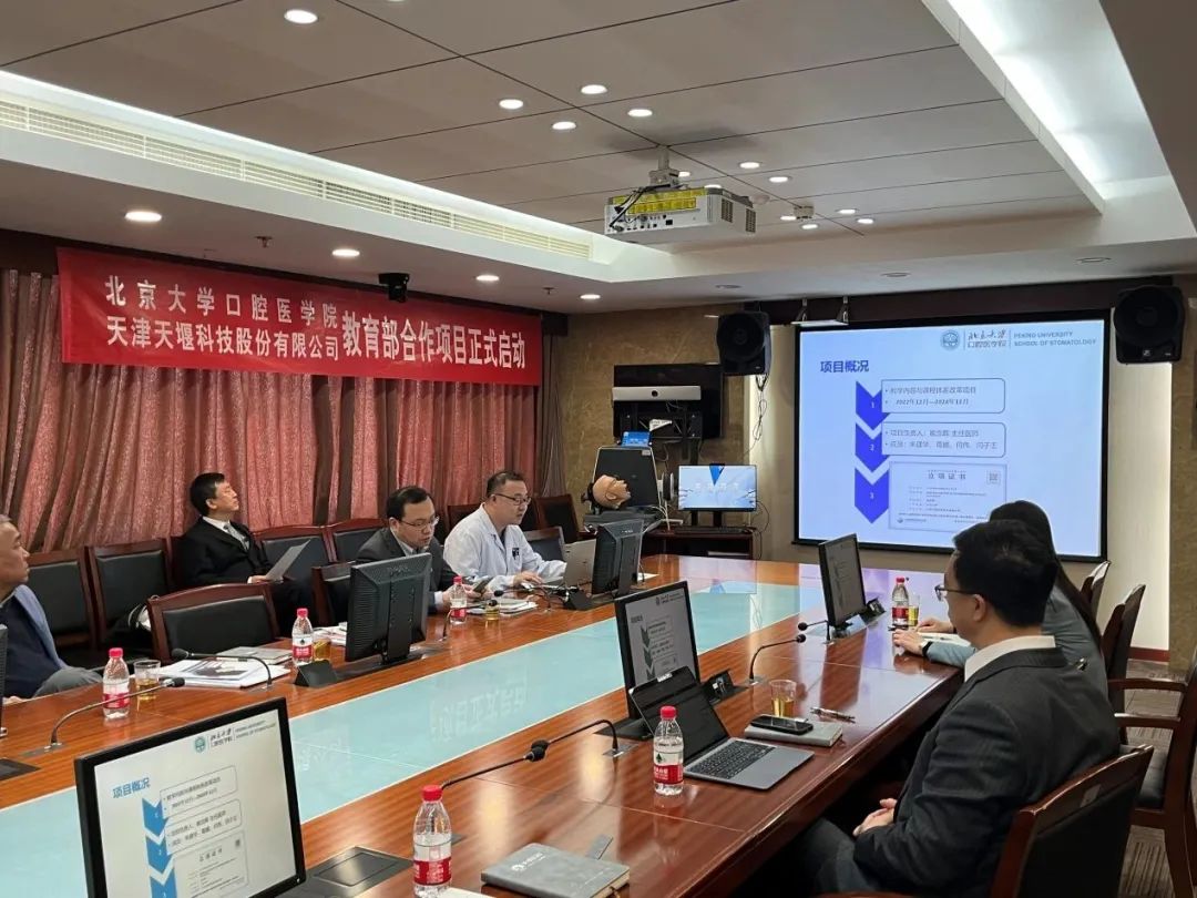 北大口腔副院长李铁军和天堰科技总经理刘雁飞分别发表讲话,强调了教学训练设备的重要性和口腔教学新品亟待开发的现状,双方表达了出对此次项目合作的期待和信心。